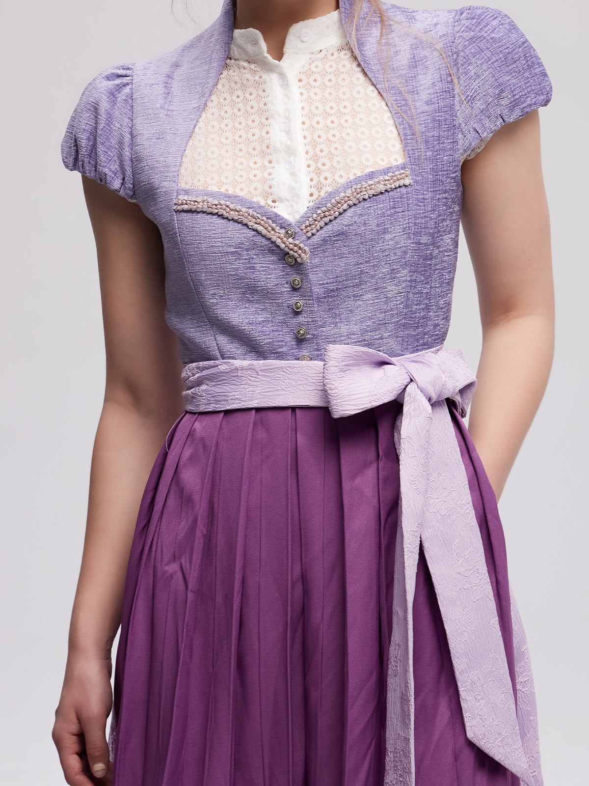 (Bild: Modernes lila Dirndl mit Spitzenbluse)